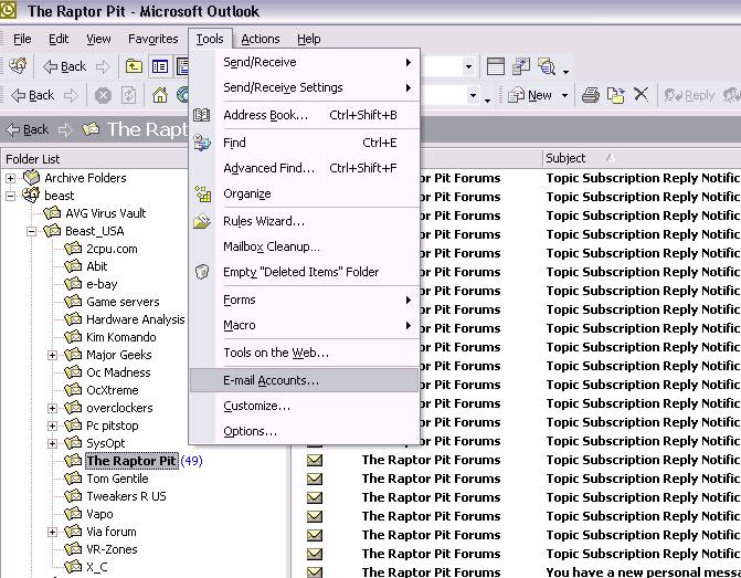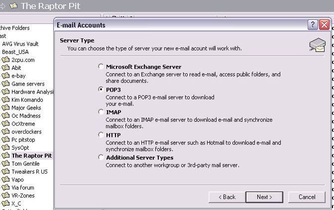 This should walk you thru setting up most e-mail servers in Microsoft Outlook 2003. Click Tools, then click E-mail Accounts.