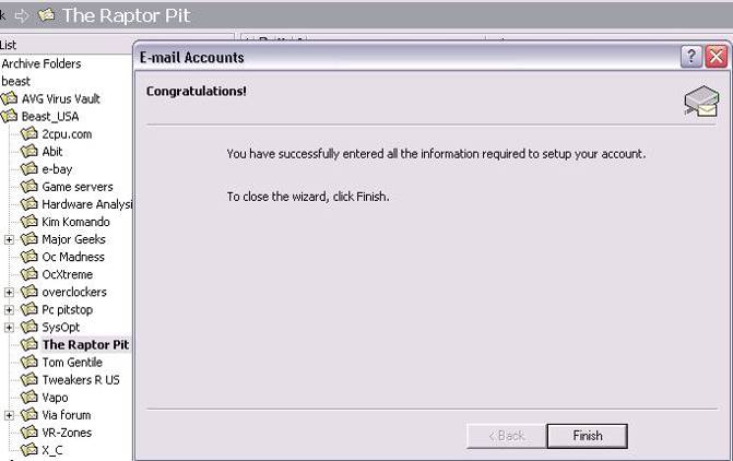 Add your name, e-mail address, user name & password. Check Remember password, Add your Incoming mail server (POP3) and your Outgoing mail server (SMTP). (your ISP will provide this) Click Test Account Settings, it will send a test e-mail if all the settings are correct all is good. If it gives you an error, read the error, wrong password, no such server check your spelling make sure all your settings are correct and try again. If it says test email sent Click Next.